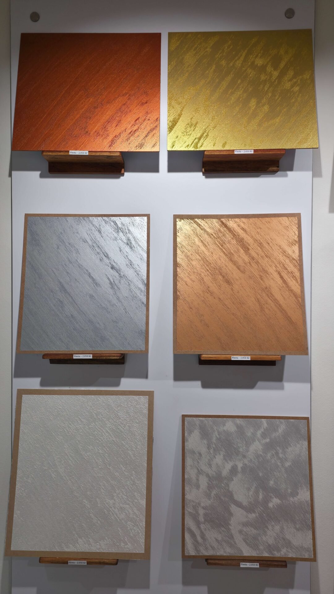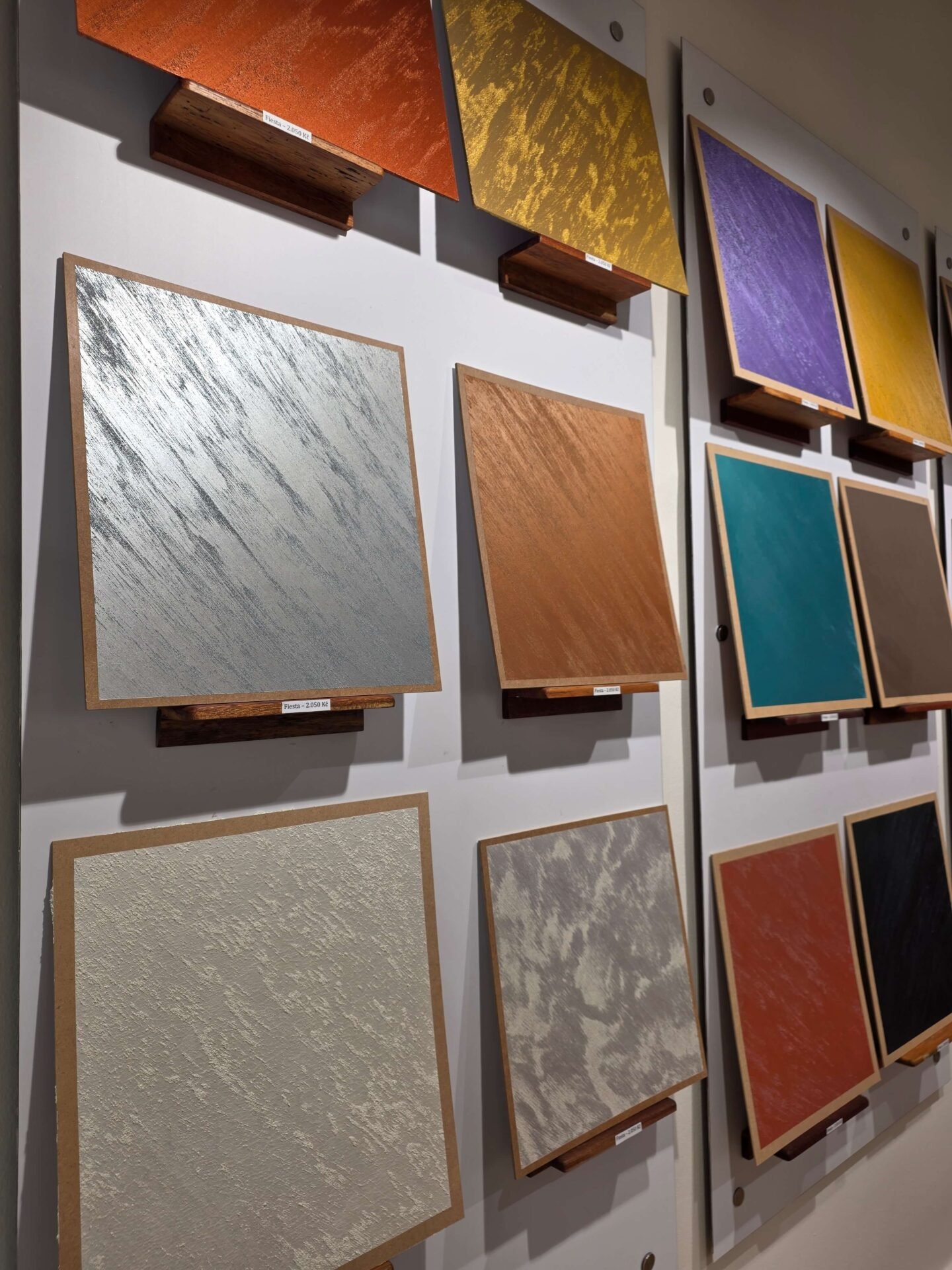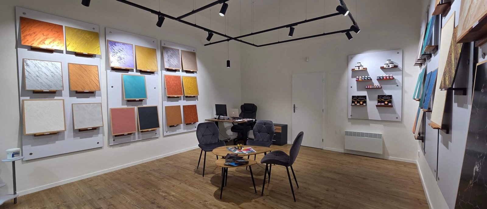 V našem pražském showroomu si můžete prohlédnout benátské omítky naživo. Na ploše přes 40 m² najdete různé vzorky textur, efektů a barev.